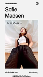 Denne fine, minimale skabelon lader dit utrolige arbejde være i centrum. Det indbyggede Wix Pro Gallery viser dit arbejde i et rent format, der er let at se, og enkle tekstafsnit giver dig mulighed for at fortælle besøgende mere om dig selv og din unikke kunstneriske vision. Klar til at tage dit talent online? Klik på "Rediger" for at komme i gang.