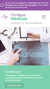 Ce template moderne a tout ce dont vous avez besoin pour promouvoir votre clinique et offrir des services de qualité à la communauté. Clair et facile à utiliser, ce template est la plate-forme idéale pour informer les patients sur vos services, vos horaires, votre personnel, et bien plus encore. Modifiez facilement le texte, importer vos images et lancez votre clinique en ligne dès aujourd'hui!