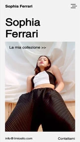 Questo template semplice ma esteticamente piacevole è progettato per attirare l'attenzione dei visitatori del sito, facilitando la navigazione della tua raccolta di lavori. Metti in primo piano la tua creatività e il tuo talento artistico personalizzando i dettagli di ogni progetto e invita i fan o i potenziali clienti a contattarti in modo semplice.