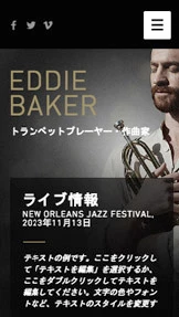 印象的な縦スクロール型のレイアウトでファンを魅了する、ミュージシャン・バンド向けテンプレートです。全画面の動画背景やアルバムごとに分けられた複数の音楽プレーヤー、ツアー情報など、多彩なコンテンツが追加されています。テキストや画像を編集し、楽曲をアップロードするだけで存在感のある素敵なホームページが完成します!