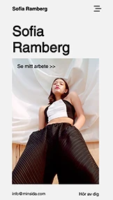 Ditt imponerande arbete talar för sig självt med den här rena, sofistikerade mallen. Sidbesökare kommer kunna utforska dina projekt med de interaktiva funktionerna, och kontaktformuläret gör det enkelt för dem att höra av sig och fråga om framtida samarbeten. Klicka på "Redigera" för att börja bygga upp en onlineportfölj som du kan vara stolt över.