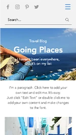 Một mẫu blog phong cách nhưng đơn giản dành cho người đang đi du lịch. Ghi lại từng bước trong hành trình của bạn với các bài đăng bằng văn bản và hình ảnh. Dễ dàng tùy chỉnh và cập nhật, mẫu này cho phép bạn chia sẻ những chuyến phiêu lưu của mình khi chúng đang diễn ra.