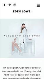 Thời trang có thể ảnh hưởng đến văn hóa và thái độ của xã hội, và mẫu thương mại điện tử này giúp các bộ sưu tập quần áo làm được điều đó. Hình ảnh cỡ lớn và bố cục rõ ràng làm nổi bật thiết kế thẩm mỹ của quần áo và phụ kiện của bạn, đồng thời nguồn cấp dữ liệu instagram dễ liên kết giúp quảng cáo thương hiệu của bạn trên mạng xã hội. Nhấp vào chỉnh sửa và bán phong cách của bạn trực tuyến ngay hôm nay.