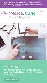 Mẫu hiện đại này có mọi thứ bạn cần để quảng bá phòng khám của mình và cung cấp các dịch vụ chăm sóc sức khỏe chất lượng cho cộng đồng. Tươi sáng và dễ sử dụng, mẫu này là nền tảng lý tưởng để thông báo cho bệnh nhân về các dịch vụ bạn cung cấp, giờ mở cửa, thông tin chi tiết về nhân viên, v.v. Chỉ cần chỉnh sửa văn bản, tải lên hình ảnh và đưa phòng khám của bạn hiện diện trực tuyến ngay hôm nay!