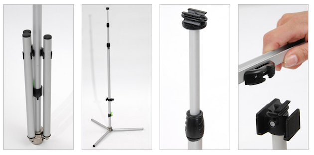 Un mât télescopique est également fourni et permet de monter facilement la structure. L’ajustement en hauteur peut atteindre 84,5 pouces.