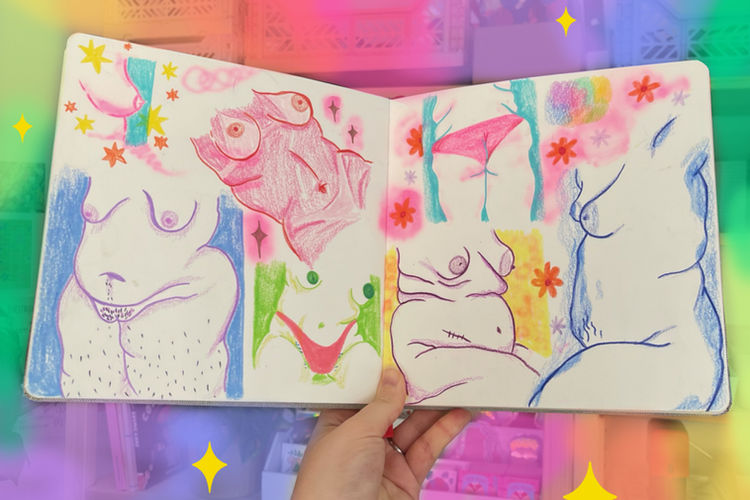 During my college years I discovered the body positivity movement and my mindset began to completely change. I started to love my body exactly as it was and began creating art surrounding my experiences as a fat woman—creating body-positive work to reflect this new mindset. My art and small business is all about helping people love themselves exactly how they are, in the hopes that no other young person will feel the way I did.”
